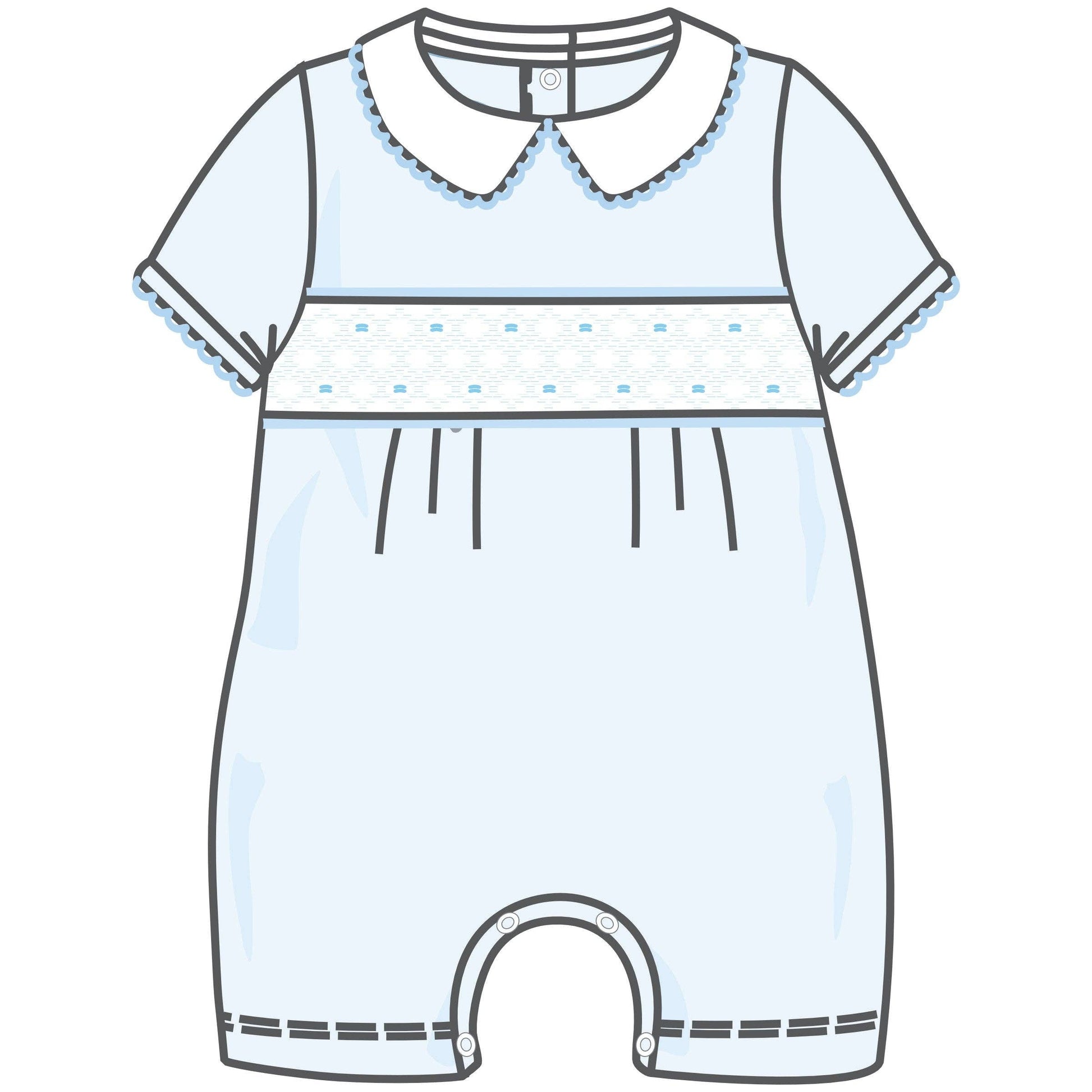 Walker's Classics Smocked Short Playsuit - Light Blue